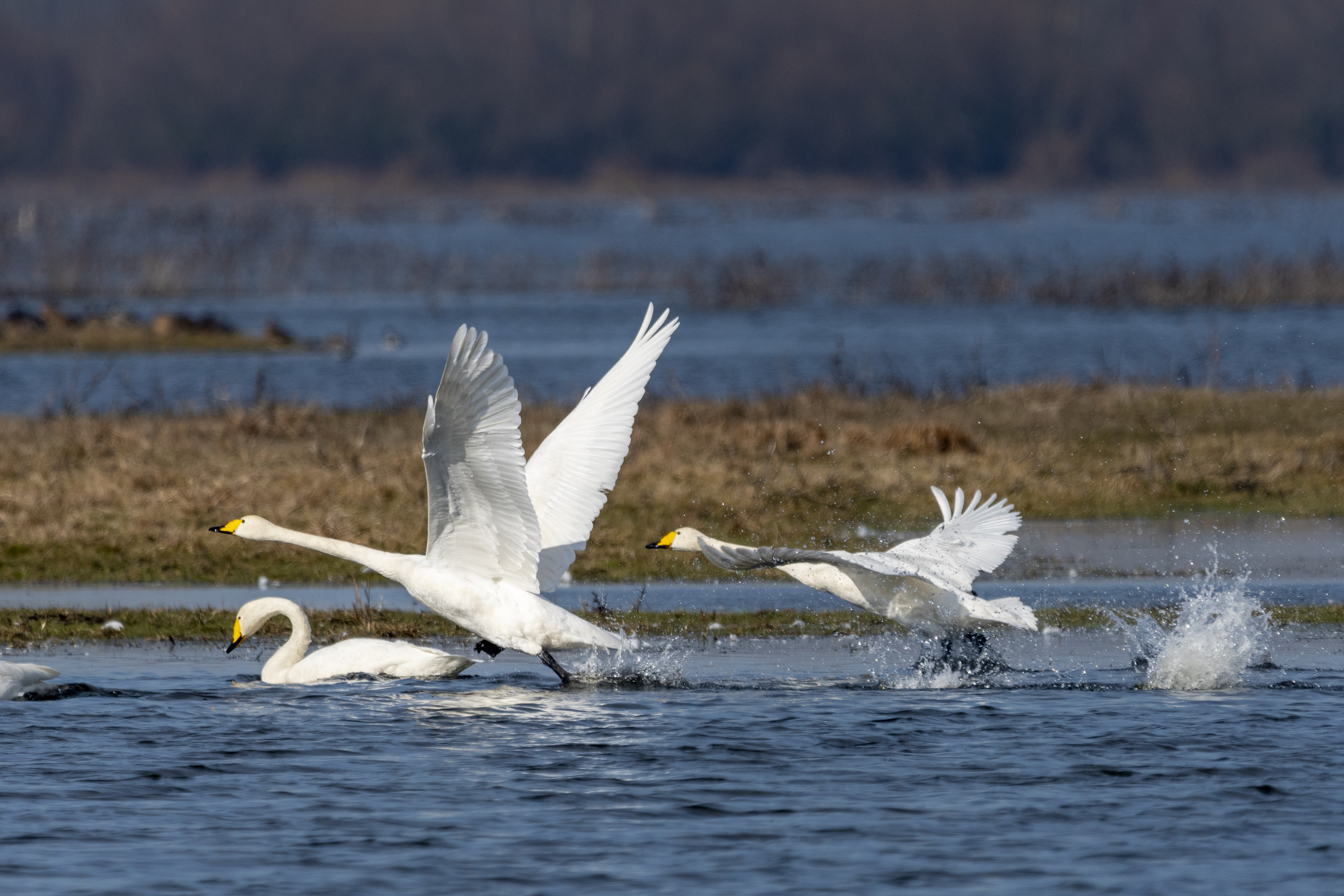 Na koniec wyjazdu odbył się spacer terenowy, podczas którego, korzystając ze specjalistycznych lornetek, uczestnicy mogli obserwować łabędzie krzykliwe w ich naturalnym środowisku — majestatycznie unoszące się nad wodą lub spoczywające na brzegu.